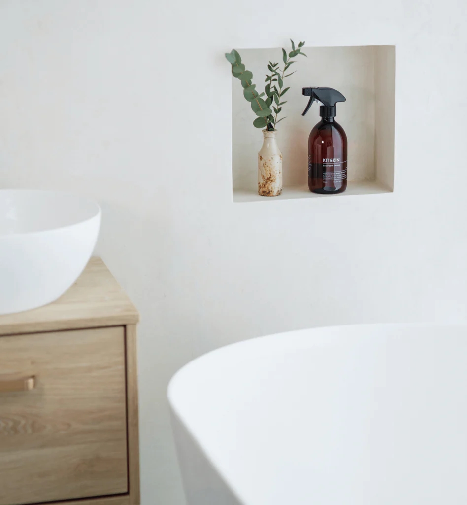Rozlúčte sa s vodným kameňom a škvrnami od tvrdej vody s naším ultraúčinným čistiacim prostriedkom Kit & Kin. Je vyrobený zo 100% prírodných zložiek a ukázalo sa, že je 2,4-krát účinnejší ako výrobky popredných konkurentov na trhu. Tento veľmi univerzálny sprej je možné použiť na sklo, keramiku, plexisklo, chróm a väčšinu neporéznych povrchov. Nastriekajte a sledujte, ako zložky prírodného pôvodu pred opláchnutím rozkladajú nečistoty a rozpúšťajú vodný kameň. Nie je potrebné utierať dosucha.