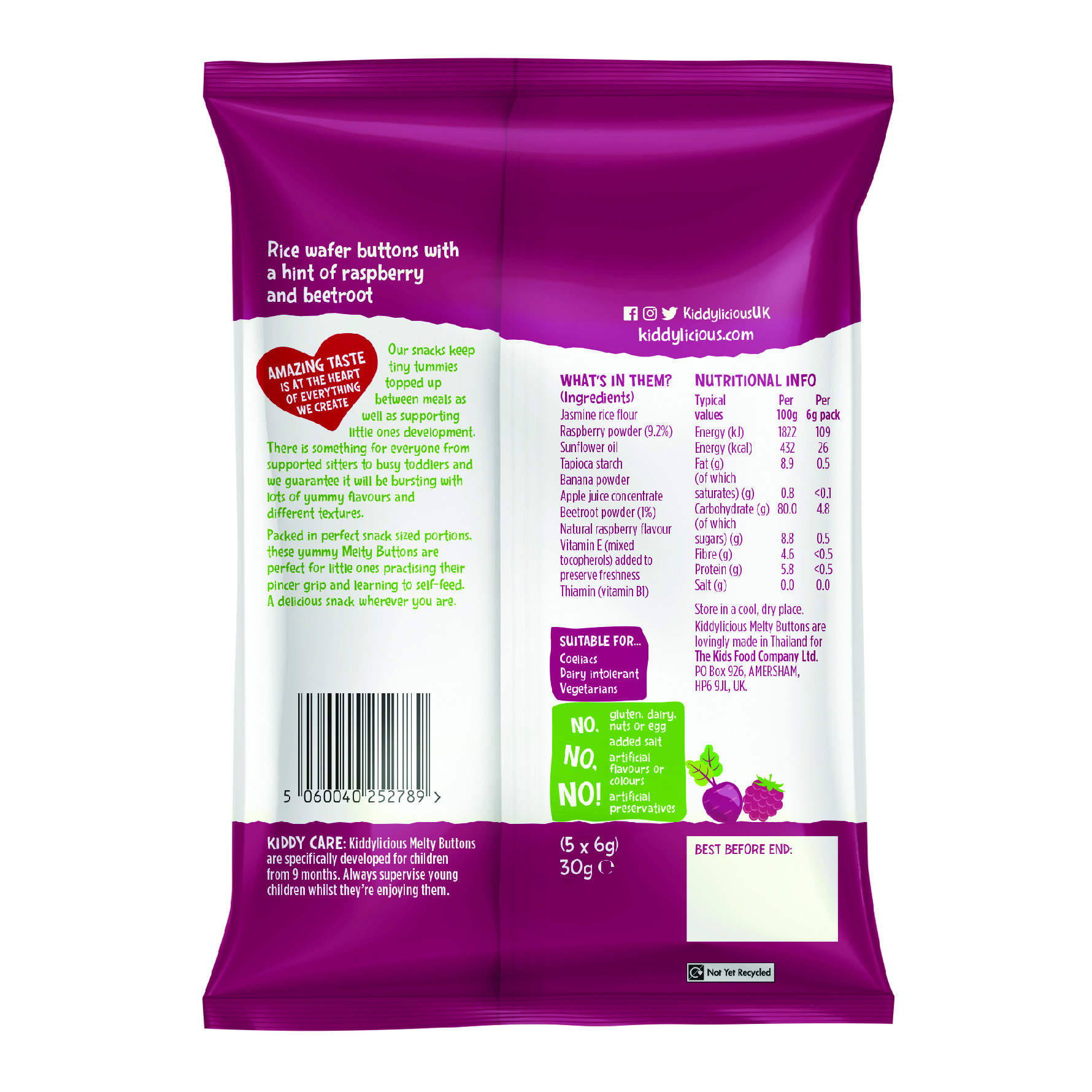 Mäkké ovocno-zeleninové gombíky s príchuťou maliny a cvikly alebo tekvice a banánu.