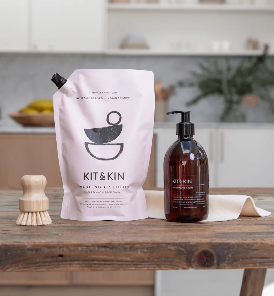 Náš prostriedok na umývanie riadu Kit & Kin je vyrobený zo 100% prírodných zložiek, ktoré sú odolné voči mastnote a šetrné k pokožke. Tento koncentrát voňavý grapefruitom a pomarančovými éterickými olejmi dodáva umývačke riadu nádych vkusu a zároveň je šetrnejší k našej planéte.