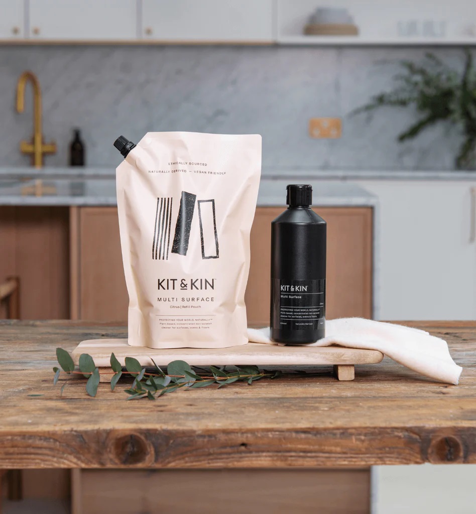 Tento viskózny zázrak využíva koncentrovanú silu rastlín na čistenie a dezinfekciu takmer akéhokoľvek povrchu. Pri použití na handričku neutralizuje 99,9% baktérií, vďaka čomu je skvelý pre mastné pracovné povrchy, kachle, rúry, umývadlá, dlaždice alebo kdekoľvek inde, kde je potrebné dezinfikovať. Pridanie malého množstva do vody zanechá podlahy a natreté povrchy bez poskvrny. Viacúčelový čistič Kit & Kin je úplne netoxický a vyrobený zo 100% prírodných zložiek. Tento obľúbený čistiaci prostriedok určený na potravinárske účely sa môže bez obáv stať vaším spoločníkom pri čistení po varení.